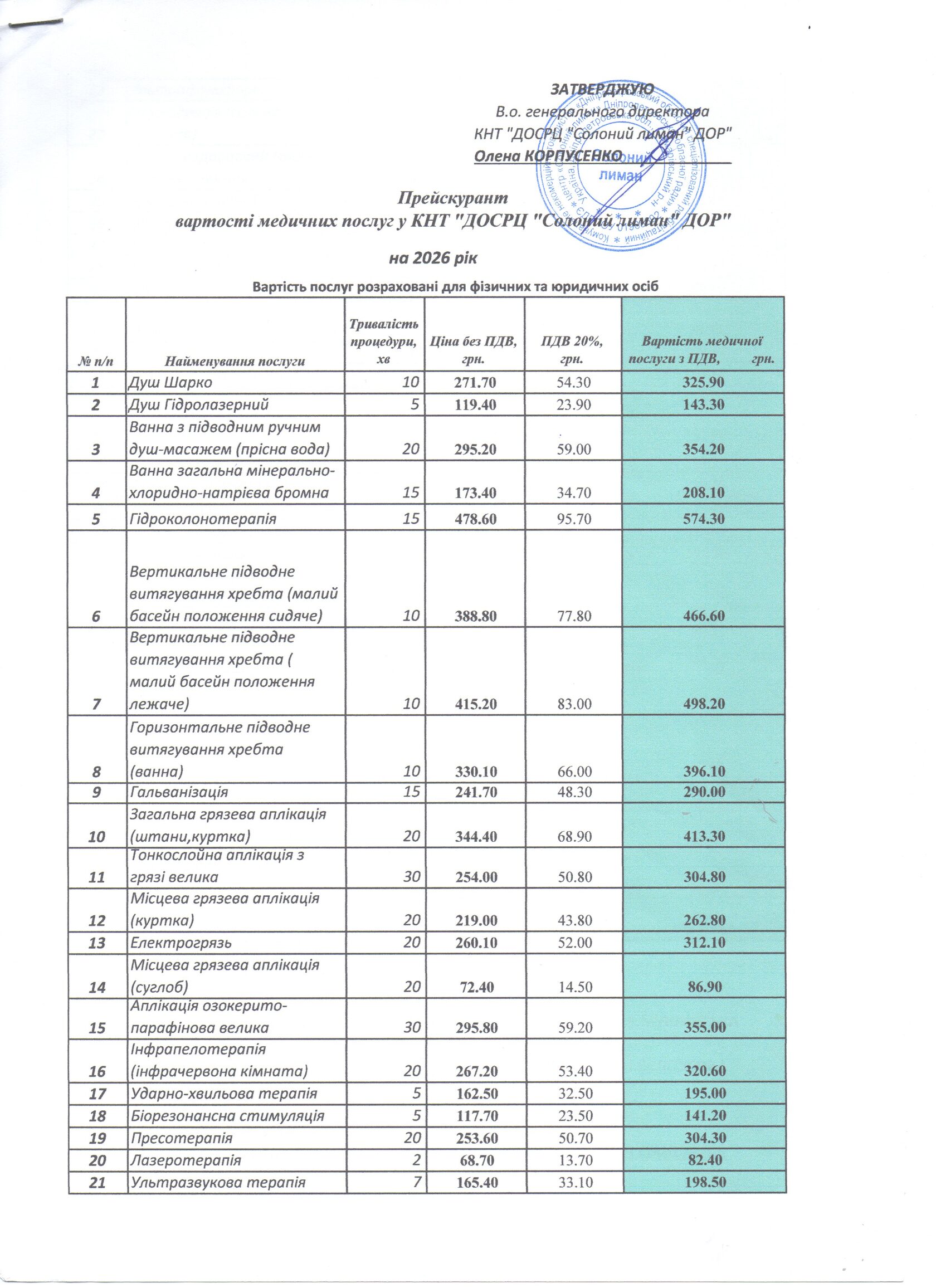 Перевага нашого центру – наявність власного Солонолиманського родовища мінеральних вод різного складу та мінералізації, які успішно використовуються у лікувальному процесі та для оздоровлення завдяки своїм цілющим властивостям. Лікувальний ефект мінеральної хлоридно-натрієвої бромної ванни оснований на фізико-хімічному та газовому складі води, її температурі і методиці застосування. Цим можна пояснити той стан рівноваги і психічного спокою, який пацієнт відчуває після прийому бромної ванни. Мінеральні ванни також сприяють ефективному лікуванню остеохондрозів, артритів, артрозів і міозитів.